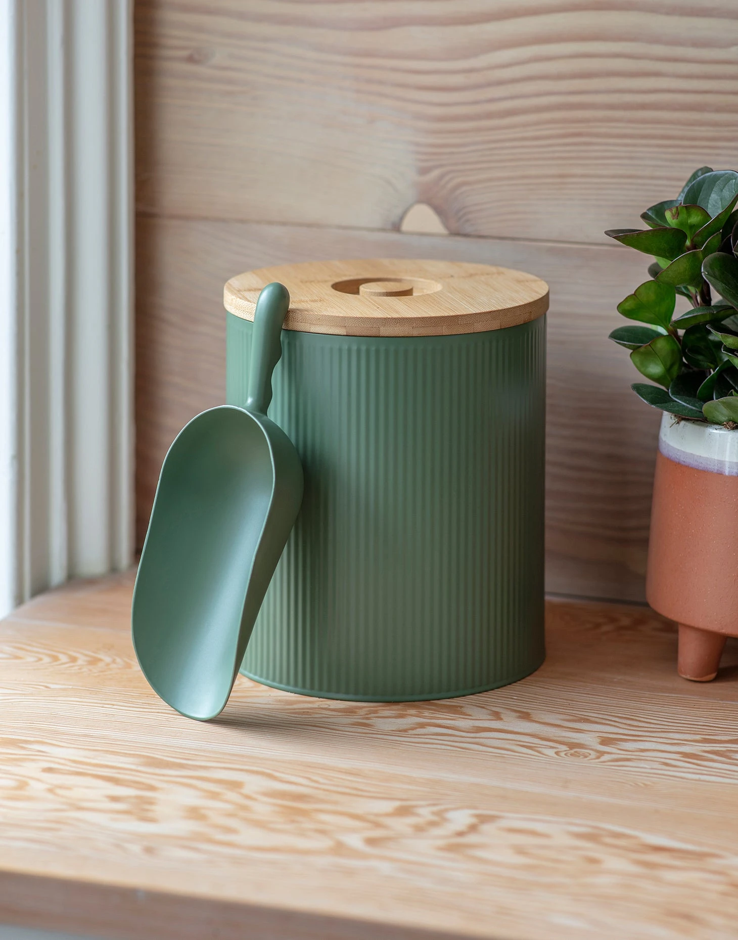 Suffisamment petite pour être placée sur un comptoir et suffisamment grande pour conserver une importante quantité de nourriture, cette boîte à croquettes est aussi discrète et élégante et sait se faire oublier dans la cuisine.