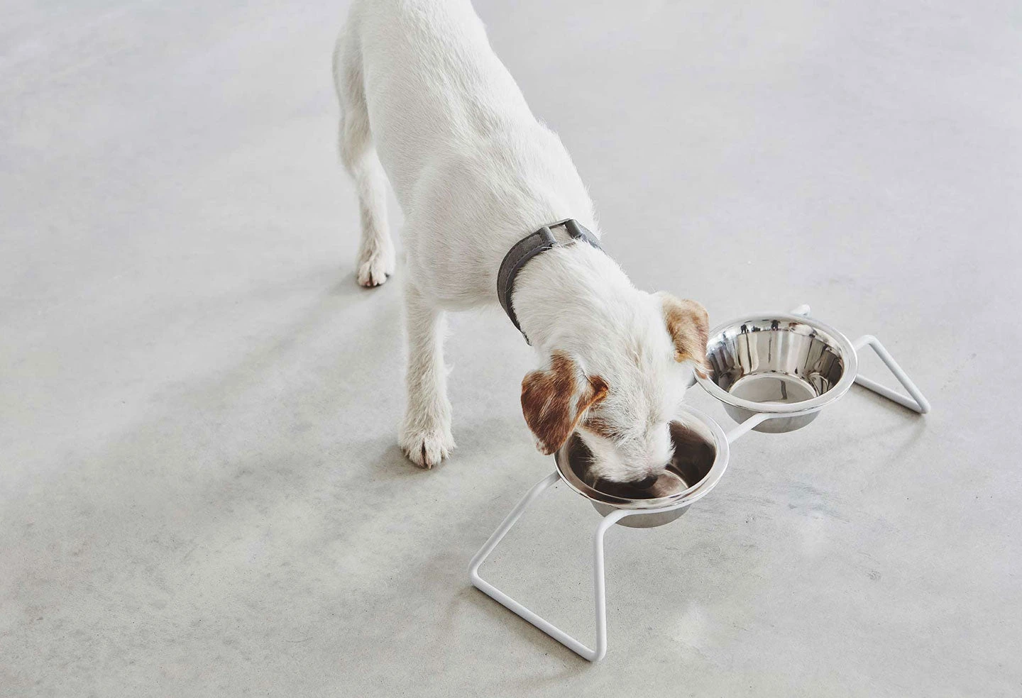 Les bols sont légèrement surélevés pour que votre chien puisse manger confortablement, et un anneau en silicone maintient chaque bol en place pour éviter les cliquetis pendant les repas. Les bols en acier inoxydable vont au lave-vaisselle et sont également disponibles séparément.