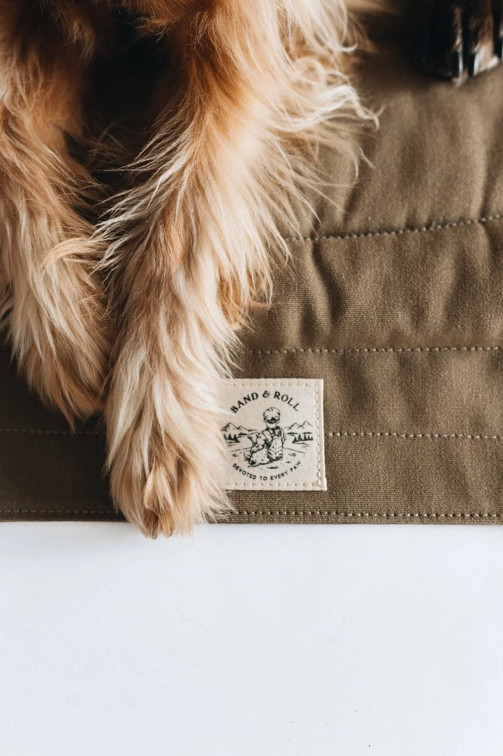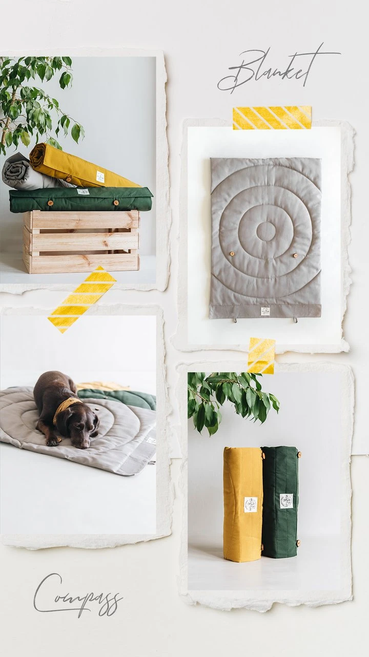 “Compass” est un matelas de voyage pour chien au design minimaliste et très léger. Il est entièrement fabriqué à la main (jusqu’aux boutons !) en Allemagne par les deux artisans de la marque band&roll.