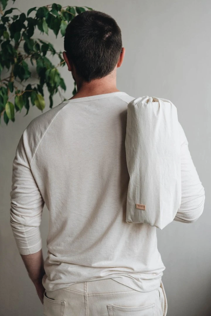 La matelas de voyage Compass est fourni avec un sac en coton muni d’une bandoulière.