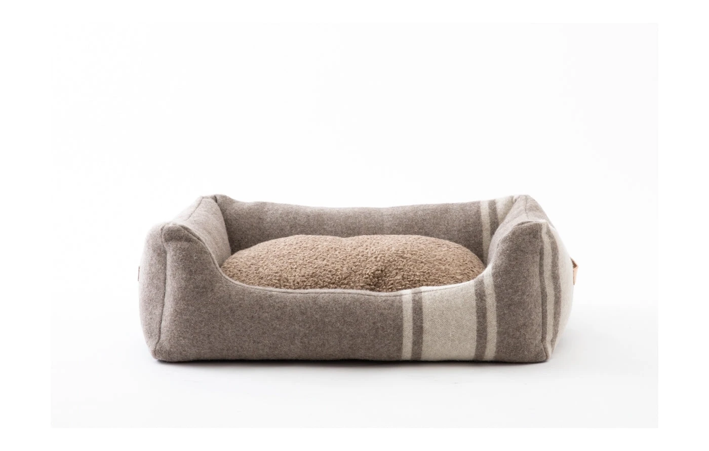 Panier pour chien doublé et recouvert d‘une laine recyclée fait à la main.
