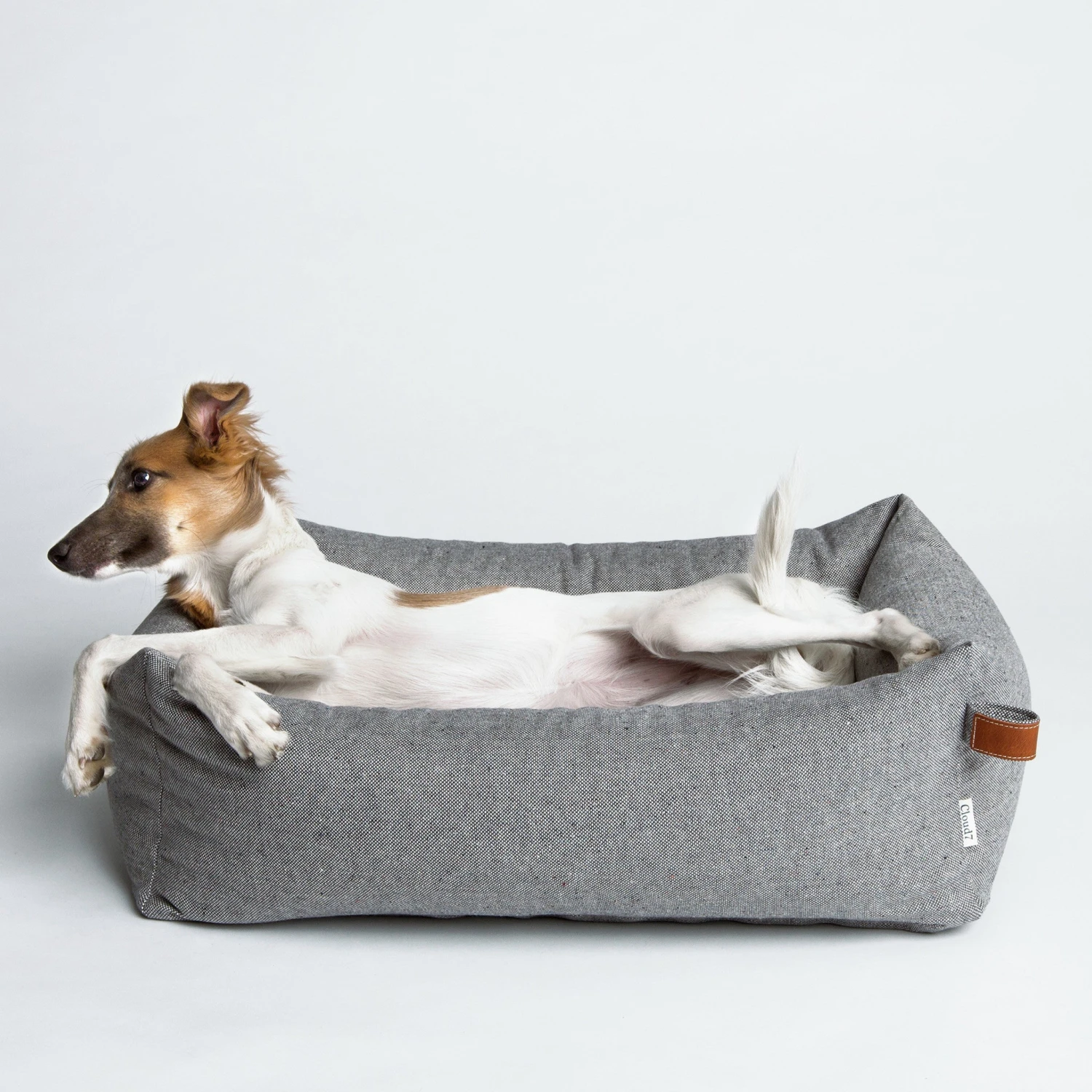 Panier pour chien haut de gamme en tweed gris clair est élégant car minimaliste, et contemporain pour les chiens et les amateurs de chiens.