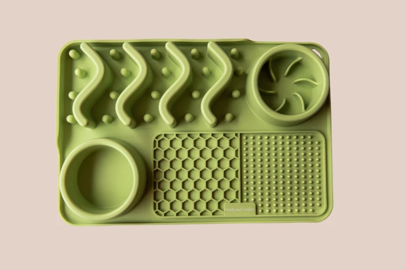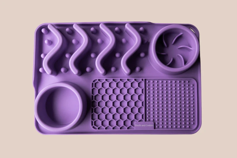 Le tapis de léchage pour chien de Floofs & Cookies est parfait pour lutter contre l’ennui, pour favoriser le développement mental de votre compagnon ou pour détourner son attention lors d’un feu d’artifice ou d’un orage par exemple.